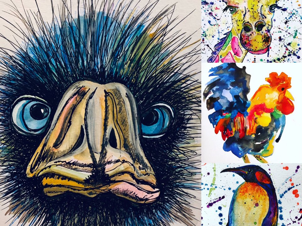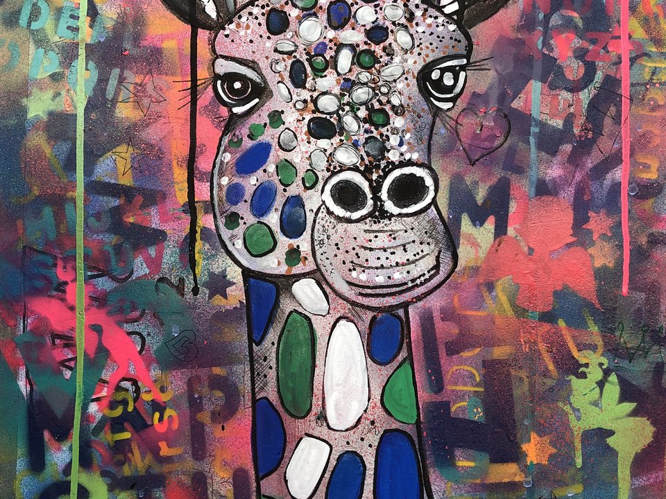 Ashlie Urquhart works with various media from Acrylics, Inks, paints, Acrylic pens & markers and spray cans & collage. She works with a range of materials including canvas & paper and this work ranges from small to large scale.