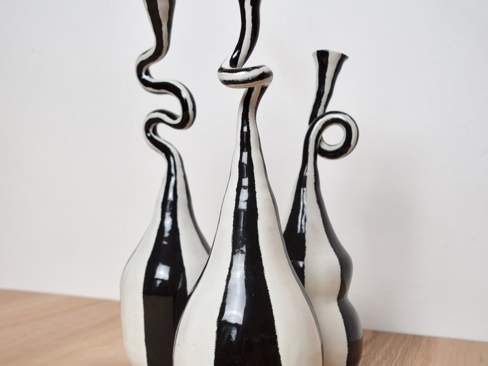 Whilst some vessels are capable of performing their traditional task of holding, their primary purpose is not utility, but presence. They are made to exist as self-contained aesthetic forms. Others deliberately disregard the conventions of the domestic object, and assert themselves as standalone curiosities, explicit celebrations of form, surface, and visual intrigue.