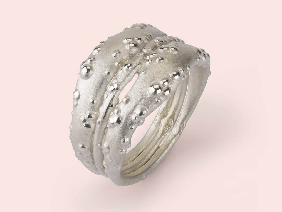 Judith Peterhoff is a South London based jeweller, her work explores the beauty in imperfections, celebrating our individual quirks as human beings. Judith’s jewellery is shaped of organic forms with the additions of delicate clusters and textured surfaces, creating a dappled, organic aesthetic. Her pieces are delicate and dainty; fluid forms and circles of recycled sterling silver and 18ct yellow gold are embellished with clusters of metal and precious gemstones and diamonds. Judith's jewellery is consciously designed, made combining traditional gold- and silversmithing techniques with modern technology. Judith only works in recycled materials.